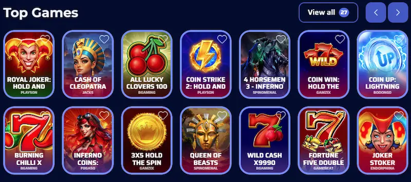 Magnetic Slots offers hundreds of table games for fans of casino classics. Blackjack, roulette, baccarat, and poker are represented in various variants. These titles allow players to diversify their sessions beyond slot machines.